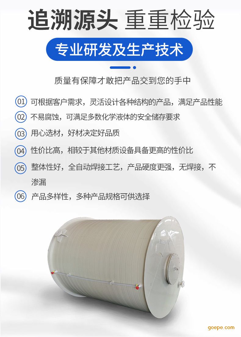 PPH储罐是以聚丙烯(PPH)为原料,采用的是螺旋缠绕叠加技术制作而成的全塑结构的耐腐蚀常压储罐。相较于一次成型工艺,缠绕挤出螺旋技术强度更好,可设计性强, PPH储罐是塑料材质制作而成的储罐之一,也是现今比较具有前景的一种塑料材质储罐。耐冷热温度为-10℃~90℃,常用于医药、印染、食品、油脂、环保、冶金、轻工、石油、化工、等行业生产中物料的贮存、暂存等,其原因也是因为PPH储罐较比传统防腐罐有独特的优势。